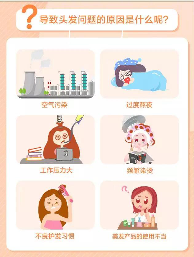 1、現(xiàn)在人頭發(fā)的主要問題:脫發(fā)掉發(fā)、頭發(fā)稀疏、毛躁油膩、發(fā)絲分叉干枯