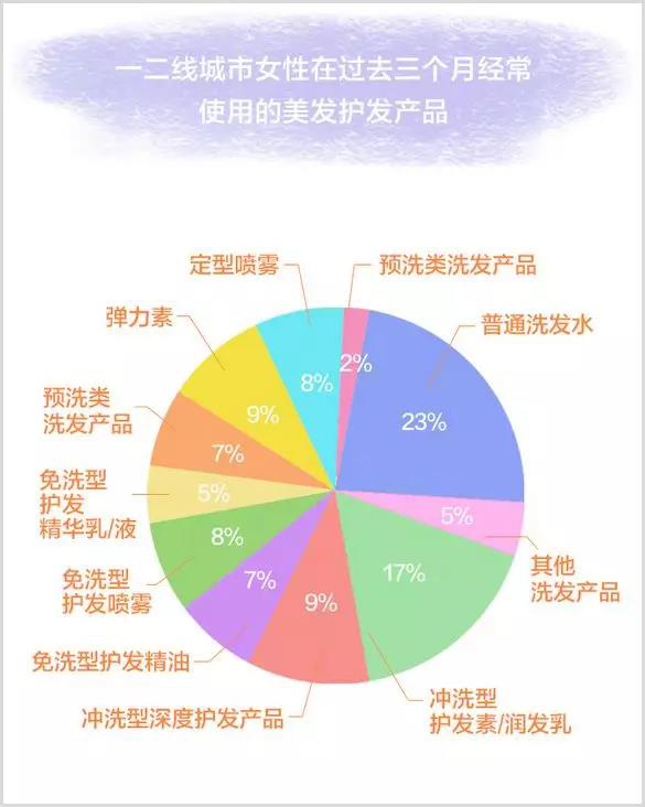 值得注意的是,在《報(bào)告》中,一二線城市女性在日常美發(fā)護(hù)發(fā)過程中,已顯示出更豐富的選擇和更多樣的步驟。比如在過去三個(gè)月中,她們經(jīng)常使用的產(chǎn)品包括定型噴霧、彈力素、免洗型護(hù)發(fā)精華乳/液等,相比于之前使用的普通洗發(fā)水、護(hù)發(fā)素,她們多了預(yù)洗類、免洗類、定型類等產(chǎn)品。同時(shí),這些細(xì)分功能也從側(cè)面顯示出,當(dāng)下女性在頭發(fā)護(hù)理上的需求更加精細(xì)。