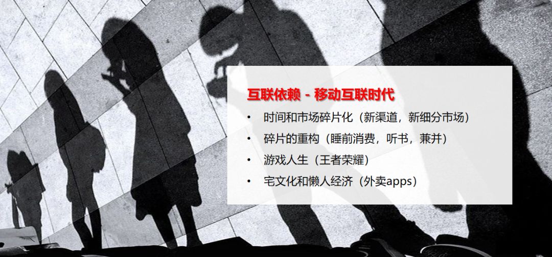 與此同時(shí),時(shí)間被碎片化,時(shí)間被壓縮,時(shí)間被重構(gòu),時(shí)間也被短暫的重復(fù)的利用。甚至,衍生出來(lái)了一些類似“宅文化”、“懶人經(jīng)濟(jì)”等新興文化,整個(gè)社會(huì)創(chuàng)造了非常多的驅(qū)動(dòng)力,這些新興的經(jīng)濟(jì)對(duì)于整個(gè)互聯(lián)時(shí)代的推動(dòng)有極大的幫助。