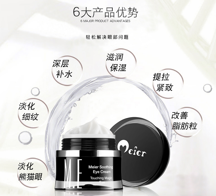 美爾舒緩眼霜,適合各種不同年齡層次的顧客,蘊(yùn)含三七、霍霍巴籽等高純度草本精華,深層滋養(yǎng)修護(hù),舒緩眼周疲勞,改善眼袋,加速肌膚代謝,分解黑色素,淡化黑眼圈。強(qiáng)效保濕因子,深層鎖水保濕,提升皮膚彈性,賦活受損肌膚,對(duì)抗多重細(xì)紋問(wèn)題。撫平眼部干紋、細(xì)紋。抹去歲月的描繪,重現(xiàn)“睛”彩人生。(長(zhǎng)按復(fù)制網(wǎng)址,使用瀏覽器訪問(wèn)喲~http://tao.bb/lnN6a)