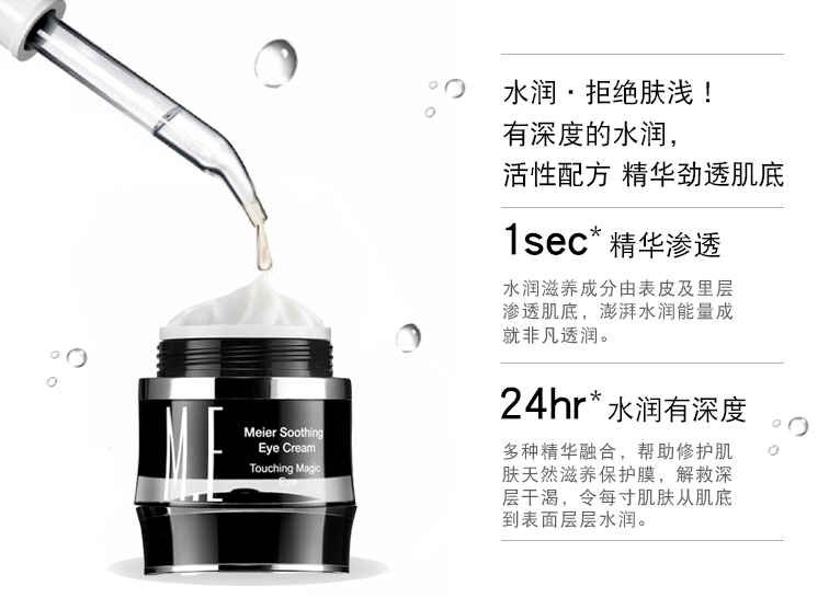 【美爾舒緩眼霜:蘊含三七、霍霍巴籽等高純度草本精華,強效保濕因子,深層鎖水保濕,提升皮膚彈性,賦活受損肌膚,對抗多重細紋問題。撫平眼部干紋、細紋。抹去歲月的描繪,重現(xiàn)“睛”彩人生】