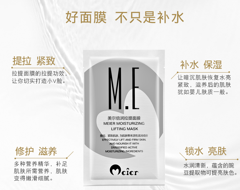 采用高彈力無紡布、立體剪裁、獨特的3D雙掛耳式設(shè)計,一拉、二提、三緊致,面頸耳全護理,提升臉部輪廓打造小V臉。融入谷物蛋白、豌豆精華、海藻糖等天然滋養(yǎng)成分,讓肌膚倍感水潤透亮。