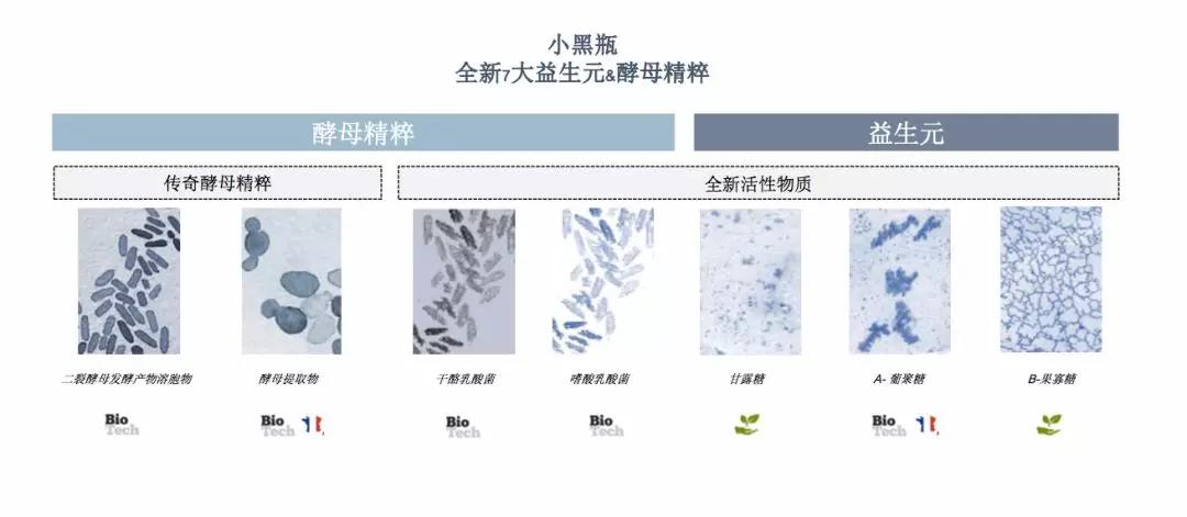 第一代小黑瓶的主要成分為二裂酵母發(fā)酵液。這一類發(fā)酵物,簡單說就是各種酵母菌的培養(yǎng)液,含有各種氨基酸、多糖、蛋白質等。