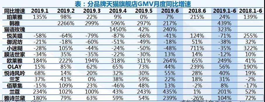 2 行業(yè)概況:2019年1-6月天貓美容護(hù)膚行業(yè)銷(xiāo)售額同比增長(zhǎng)40%,維持快速增長(zhǎng)。