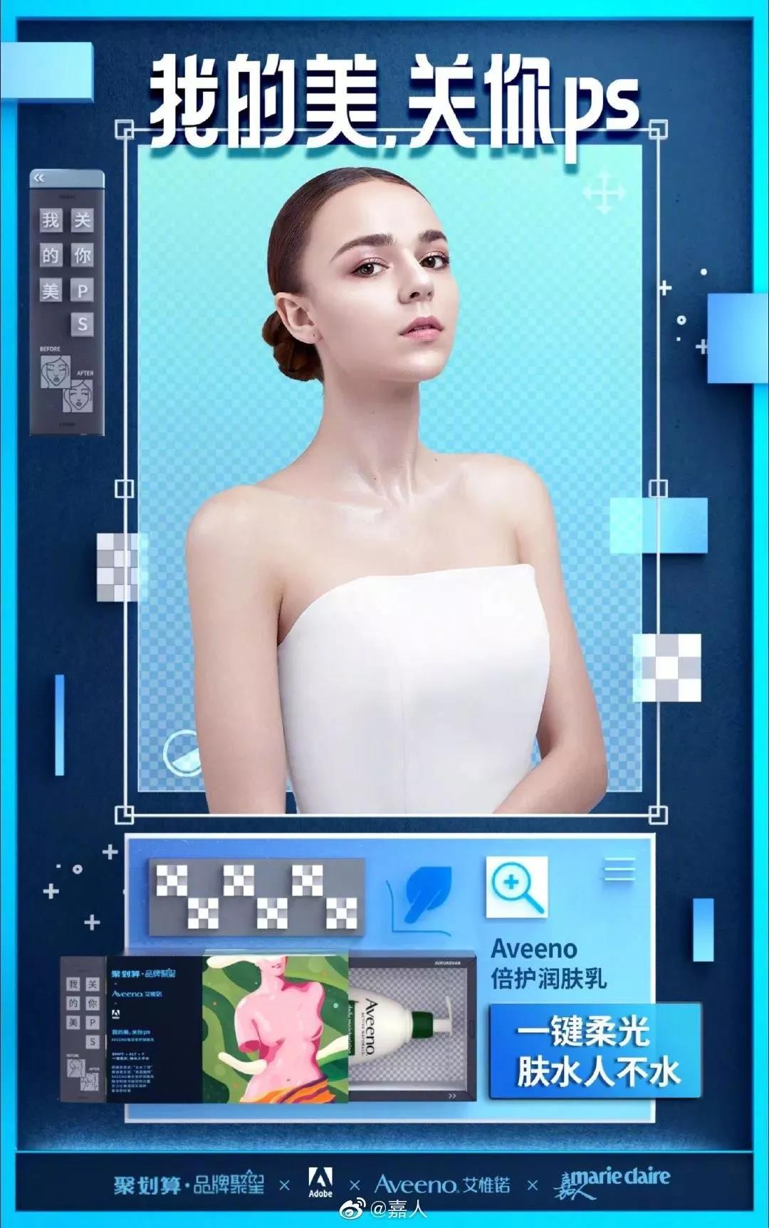 除此之外,Adobe和聚劃算還聯(lián)手時(shí)尚權(quán)威刊物《嘉人》推出軟件風(fēng)人物海報(bào),三維模特與二維平面軟件的結(jié)合展現(xiàn)破次元的設(shè)計(jì)美感,同時(shí)人物造型與禮盒的設(shè)計(jì)相得益彰。