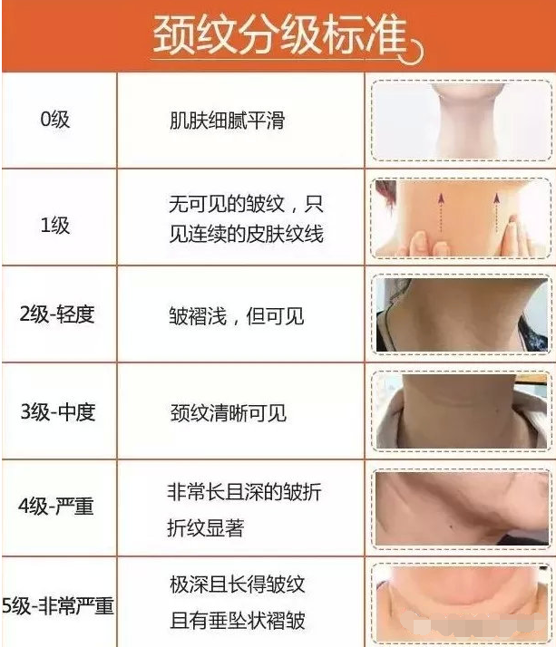 主要表現(xiàn)為頸部皺紋和輕度松弛,頸部表皮細胞衰老,胞體塌陷,結(jié)締組織萎縮,膠原蛋白流失,缺乏彈性,自然形成皺紋,出現(xiàn)輕度皮膚松弛的衰老癥狀。